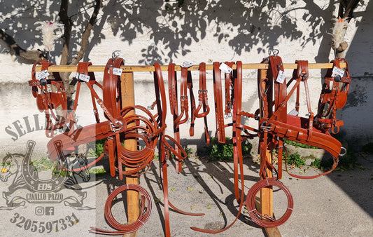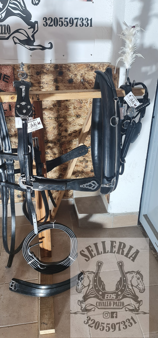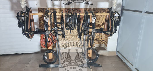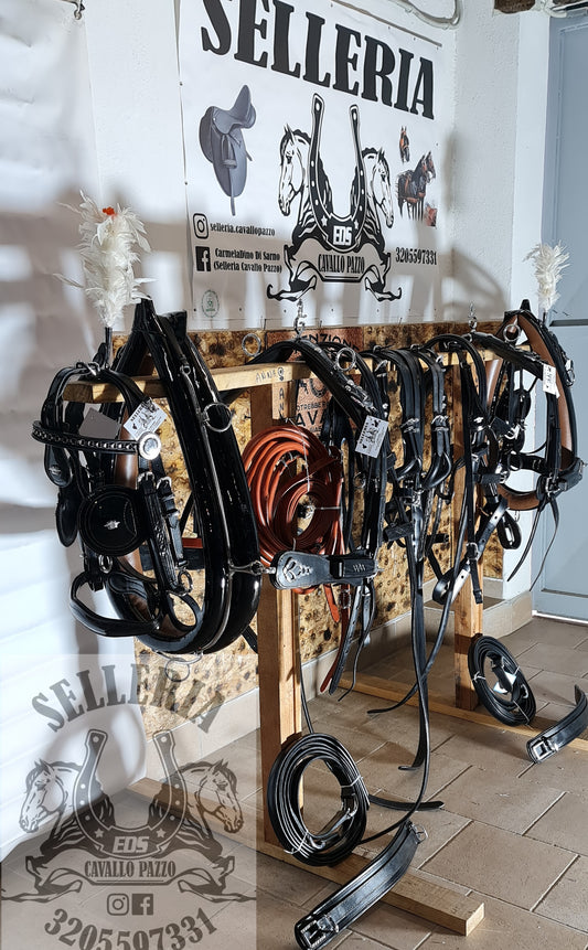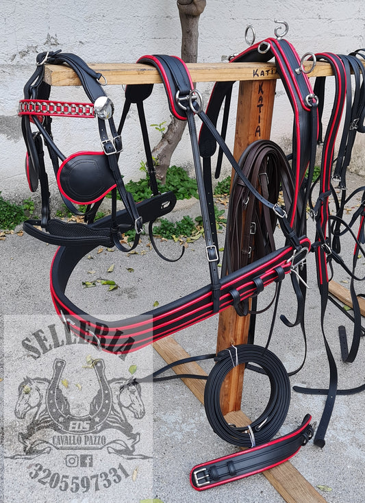 PETTORALE IN DOPPIO CUOIO COMPLETI ACCESSORI IN CROMO RINTAGLIATI