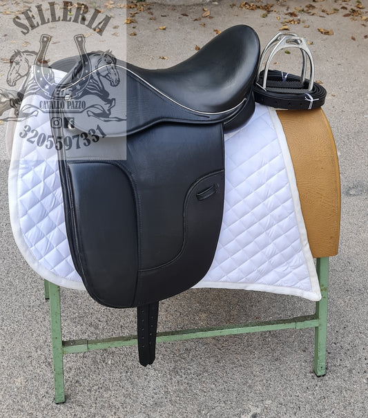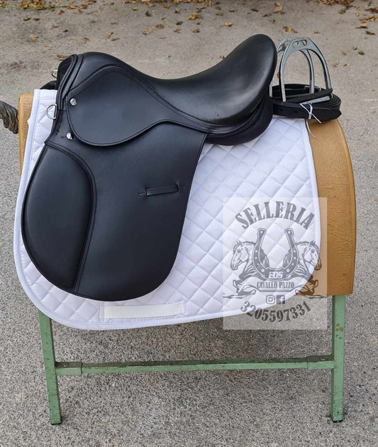 Sella inglese in cuoio nero con Bordi e cuciture bianchi Comoda e anatomic CON SEDUTA PROFONDA Completa :staffili , staffe e sottopancia Web : www.selleriacavallopazzo.com Per maggiori informazioni 320 55 97 331 Effettuo spedizione 🌍