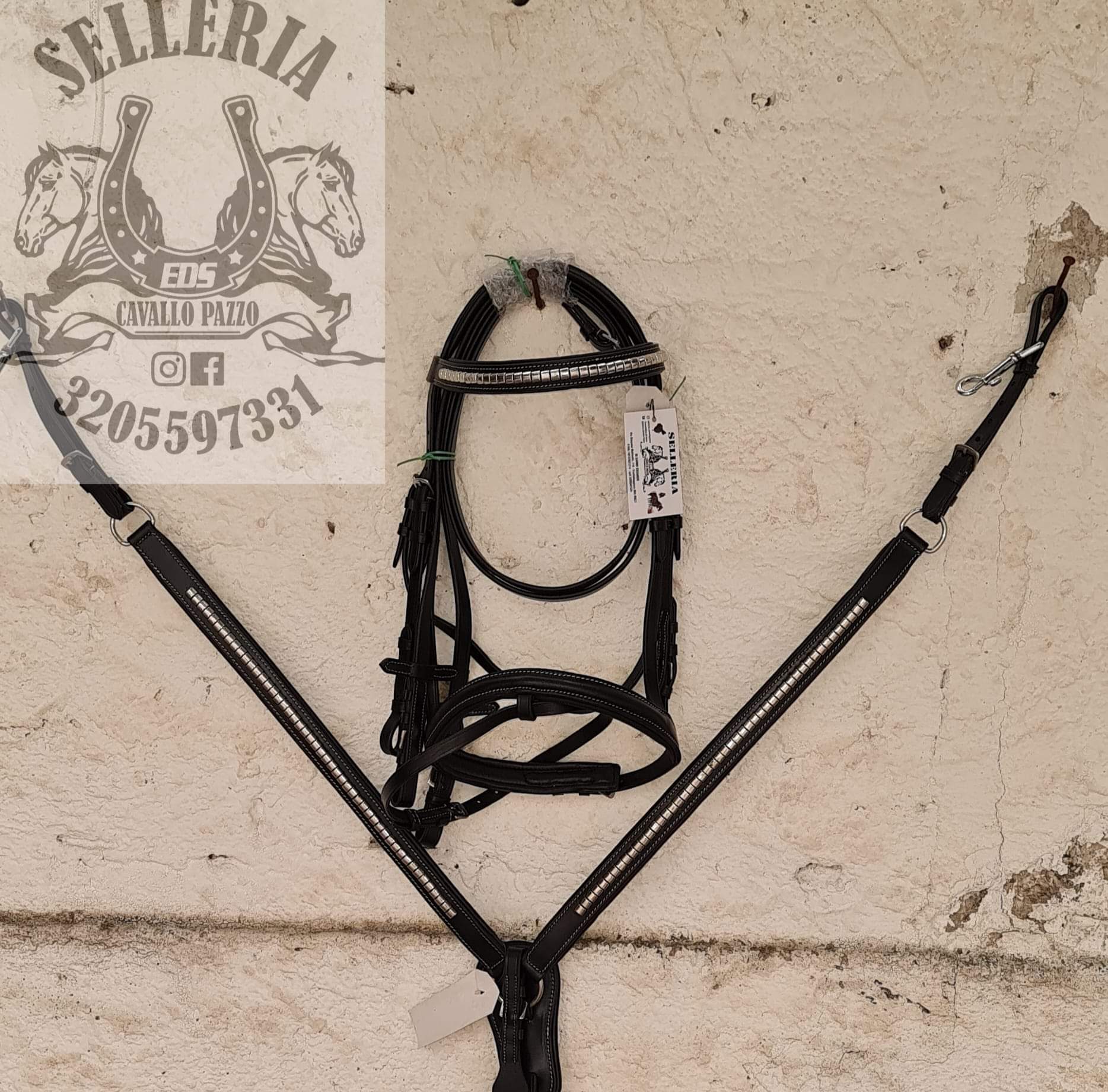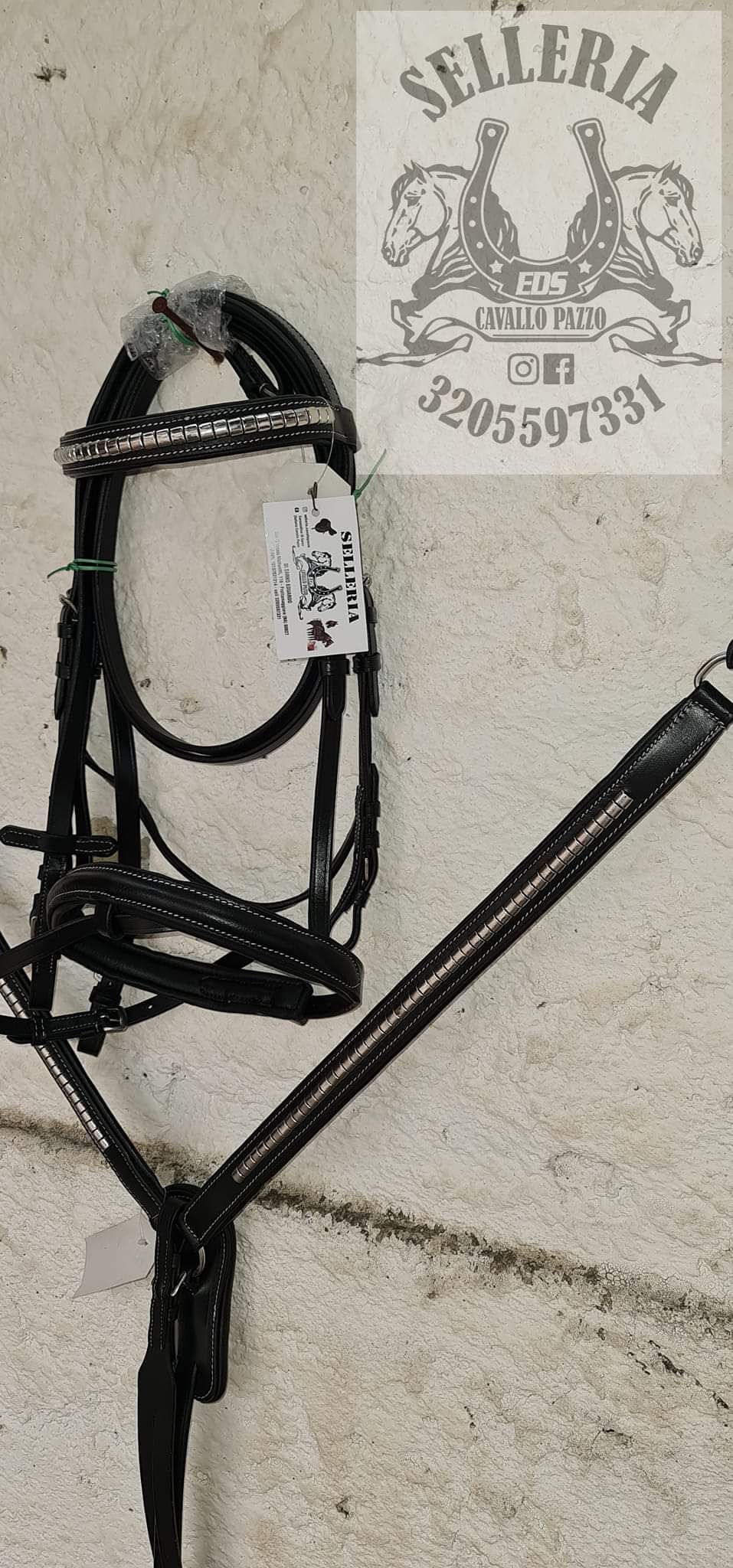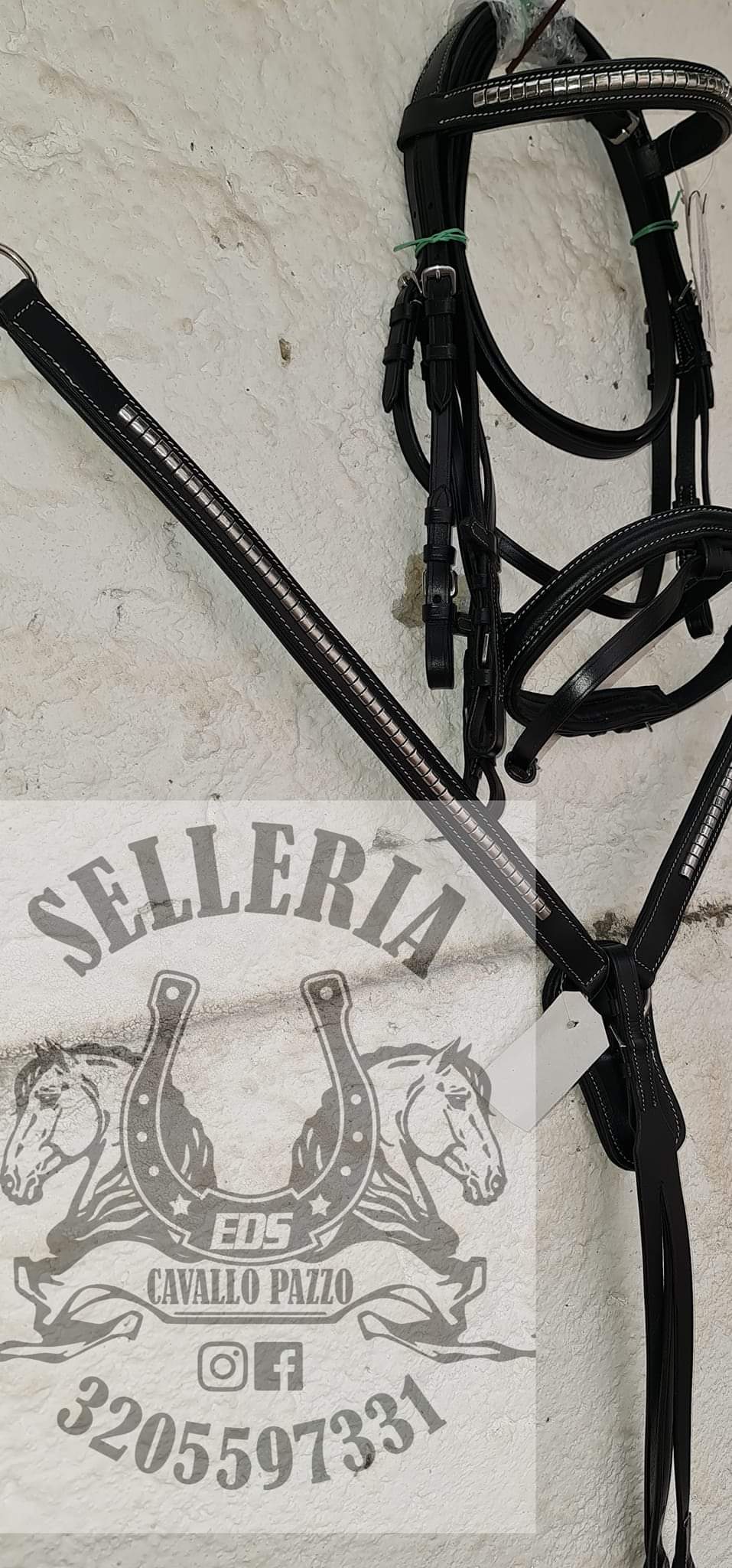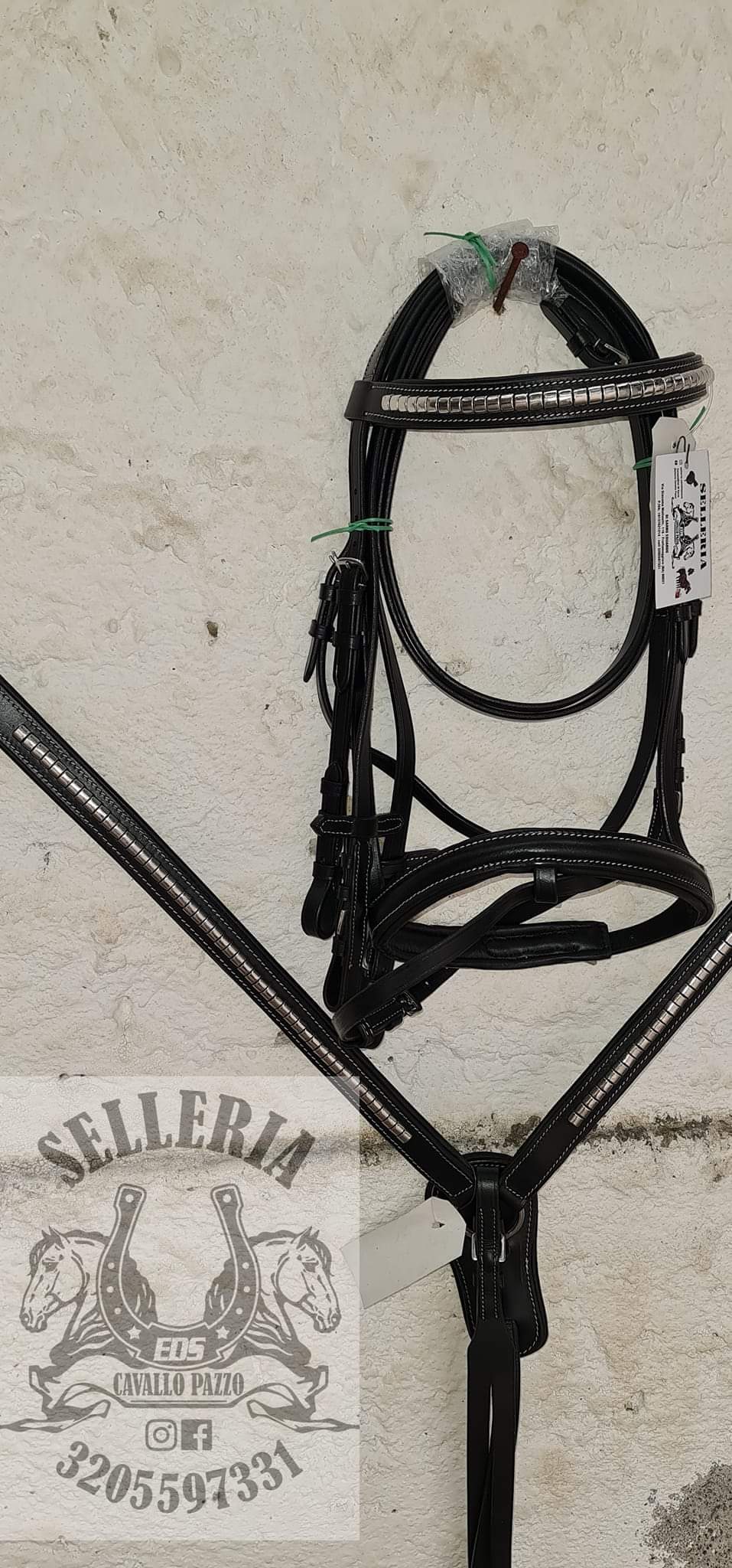 Briglia inglese in cuoio morbido ingrassato, frontalino doppio imbottito e riporti in ottone cromato
