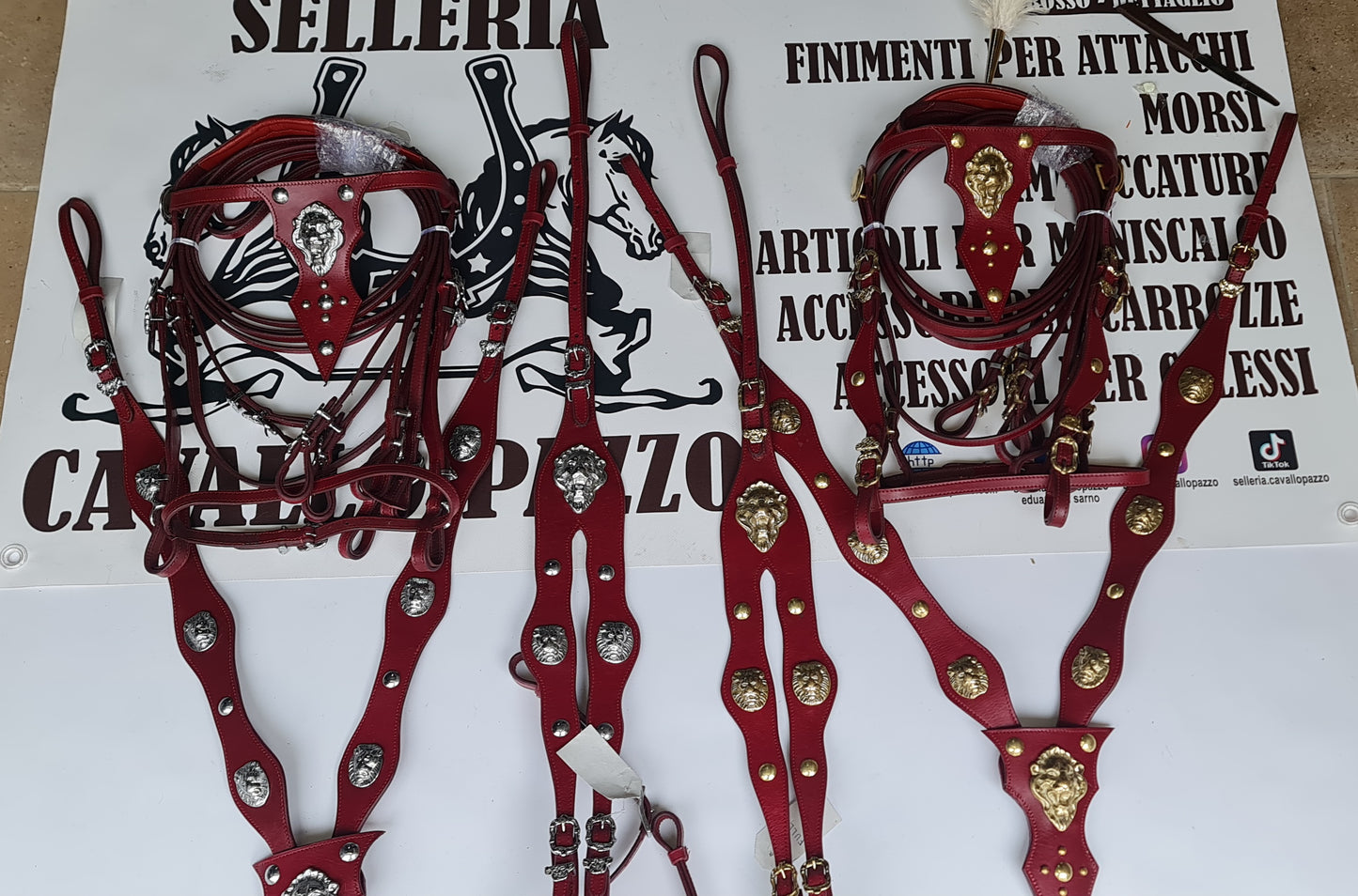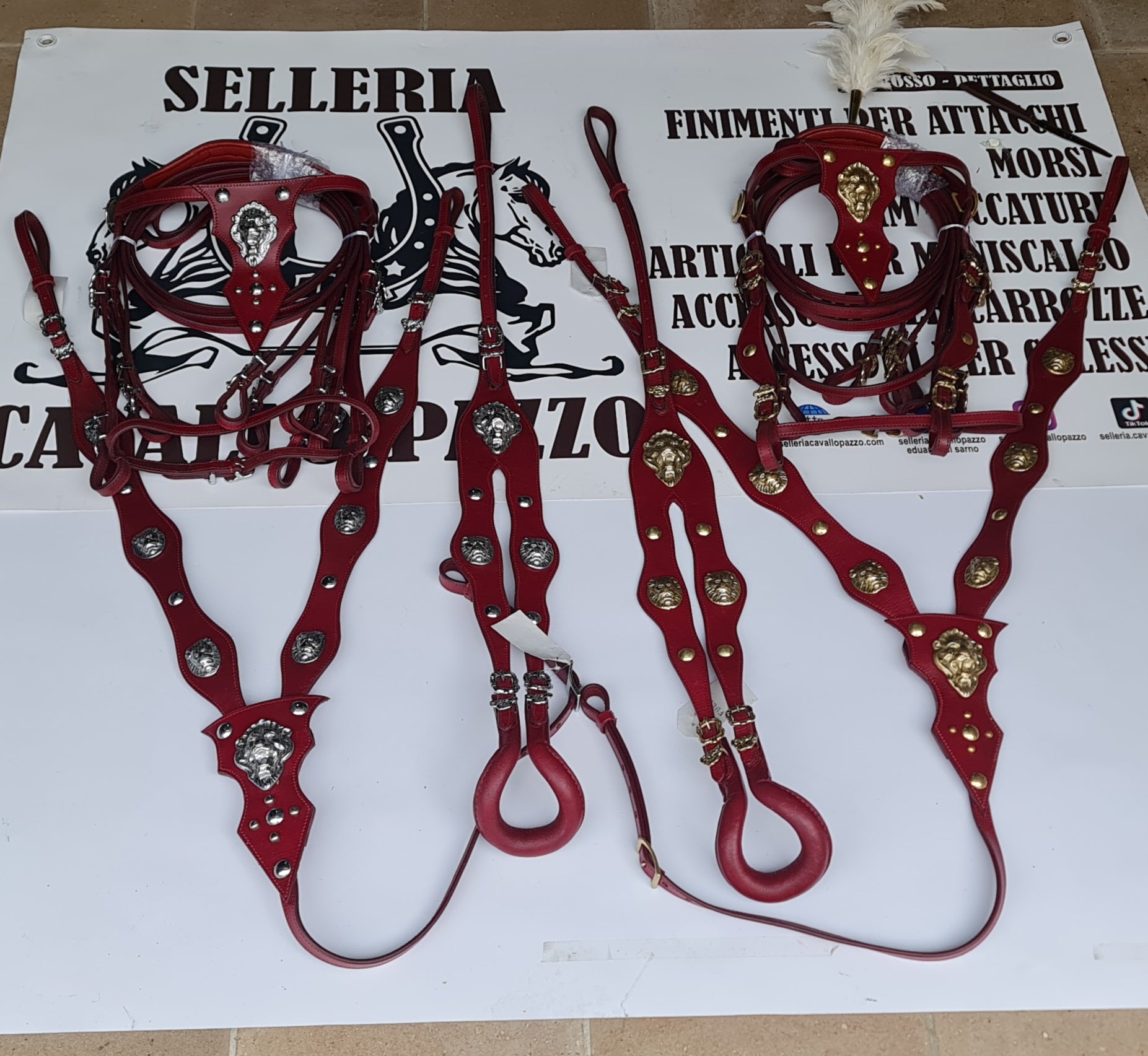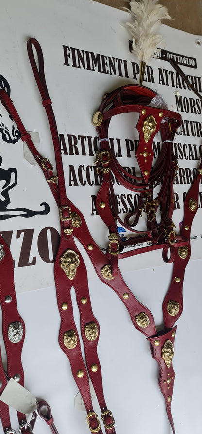 completo di testiera, redini, pettorale e codone in cuoio decorati.....